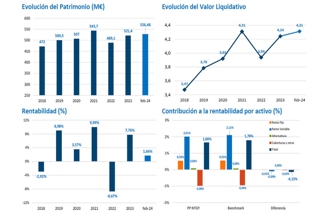 El Fondo de Pensiones se revaloriza un 1,16% en febrero y el índice de referencia un 1,17%. En el año, el fondo repunta un 1,66%, el índice de referencia un 1,79%.